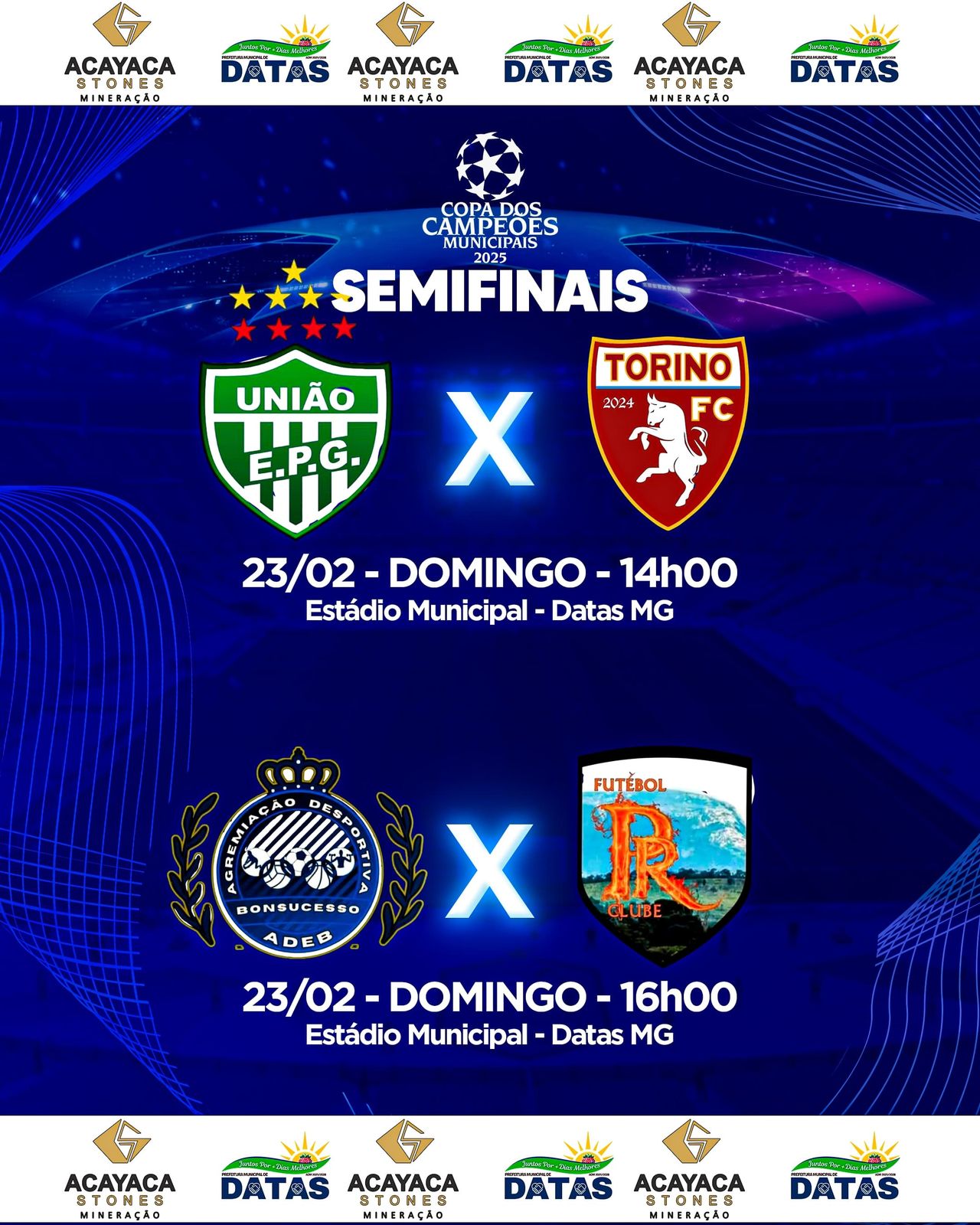 Após uma jornada emocionante, as equipes campeãs municipais se destacaram e agora irão se enfrentar na semi-final da Copa dos Campeões 2025!